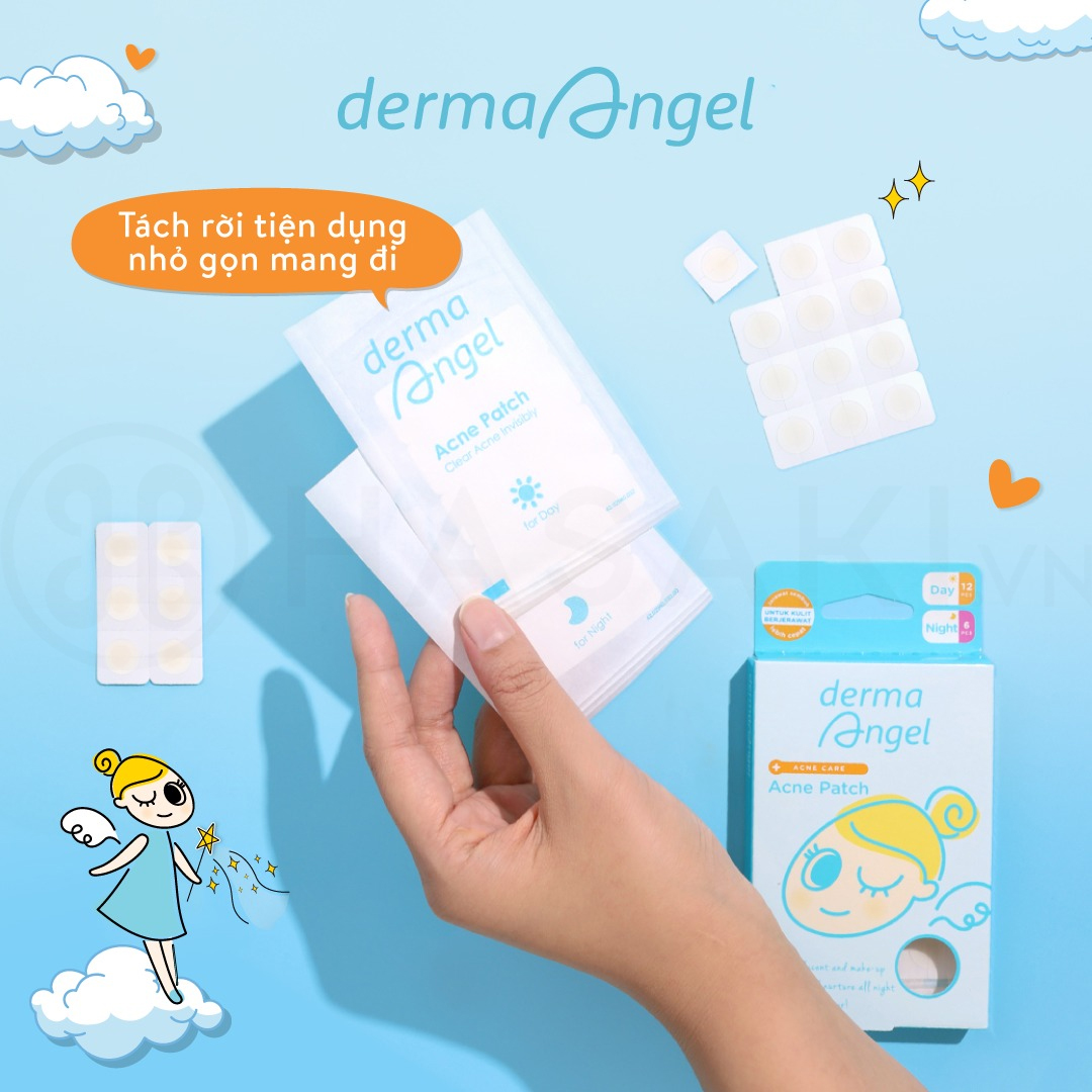 Miếng Dán Mụn Derma Angel là sản phẩm miếng dán mụn đến từ thương hiệu Derma Angel của Đài Loan, sẽ che đi những vết mụn đáng ghét đồng thời giữ vệ sinh, hạn chế viêm nhiễm và sưng tấy do các tác nhân từ bên ngoài giúp vết mụn mau lành, hạn chế để lại sẹo. Miếng Dán Mụn Derma Angel với thiết kế dễ sử dụng cùng hiệu quả bất ngờ đối với làn da những ai đang có làn da bị mụn sẽ không thể bỏ qua sản phẩm này, sản phẩm vừa có thể làm giảm mụn vừa có công dụng che phủ nốt mụn khi trang điểm, vô cùng tiện lợi.