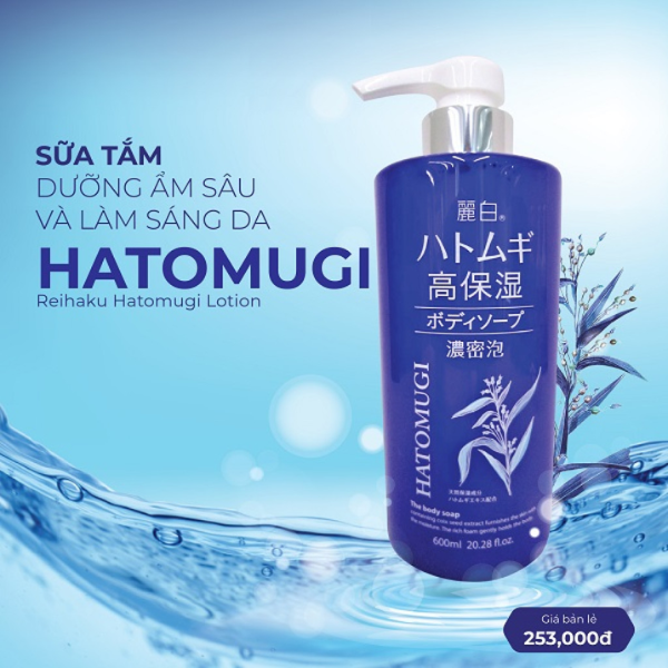 Sữa tắm dưỡng ẩm làm trắng da Hatomugi, với thành phần chiết xuất từ hạt ý dĩ và bơ hạt mỡ, mang lại khả năng dưỡng ẩm tuyệt vời cho làn da toàn thân trắng sáng và dữ ẩm độ đàn hồi của bạn một cách nhẹ nhàng.