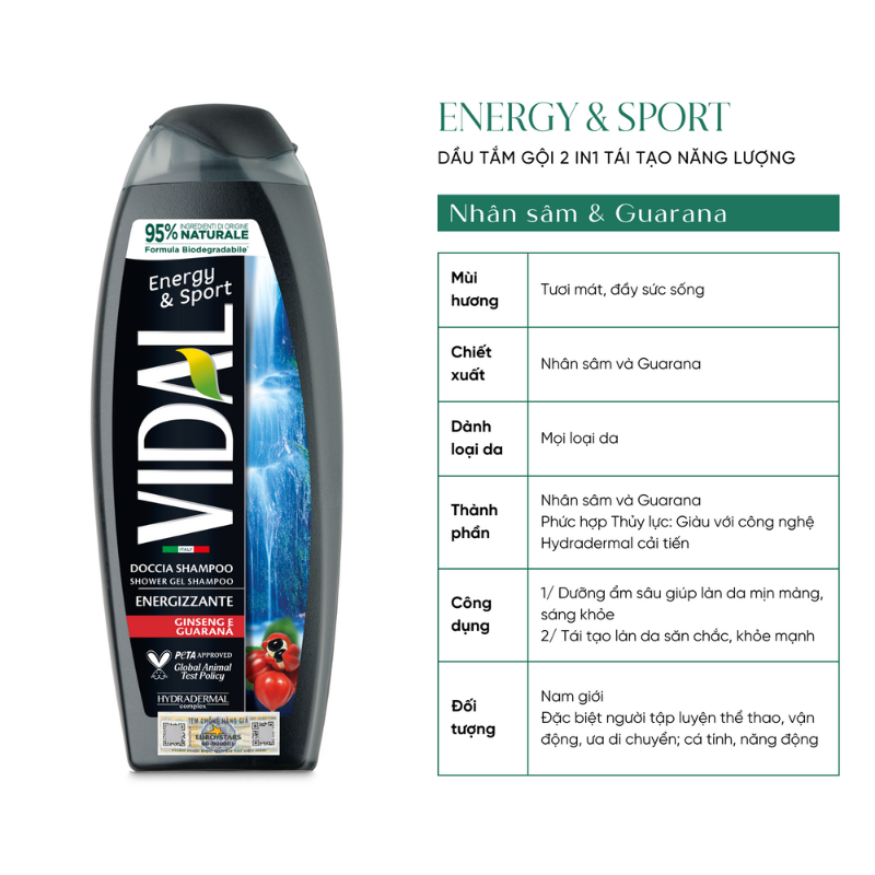 – Dầu Tắm gội 2in1 Tăng cường năng lượng (ENERGY & SPORT): Nhân sâm và Guarana