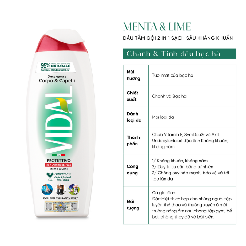 – Dầu Tắm gội 2in1 sạch sâu kháng khuẩn (MENTA & LIME): Chanh và Bạc hà
