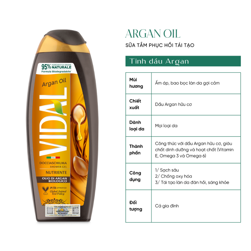 – Sữa tắm phục hồi tái tạo (ARGAN OIL): chiết xuất dầu Argan hữu cơ