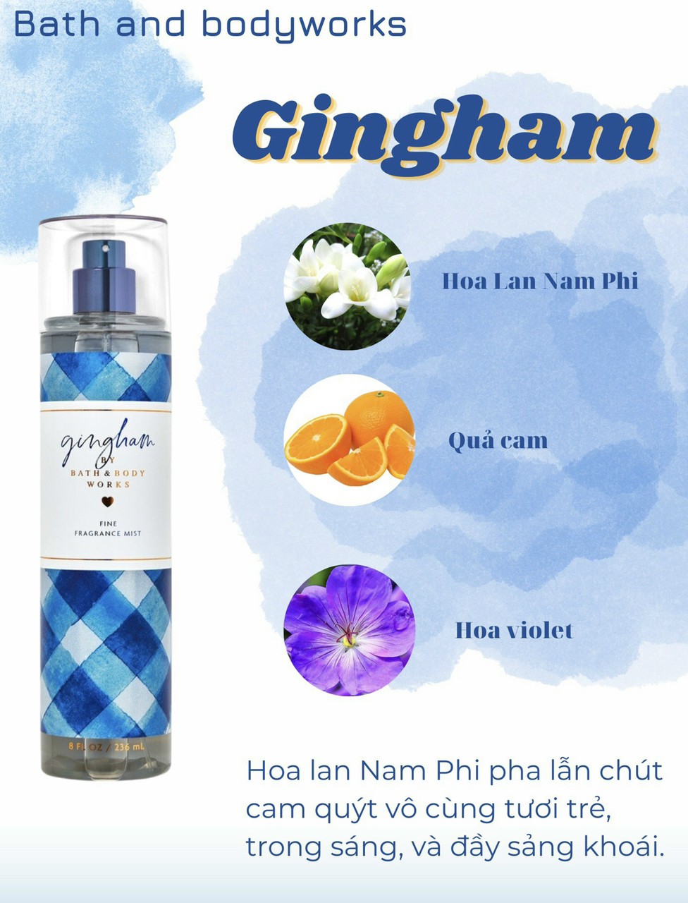 Trải Nghiệm Hương Thơm Tươi Mát của Xịt Thơm Toàn Thân Gingham Bath & Body Work 236ML